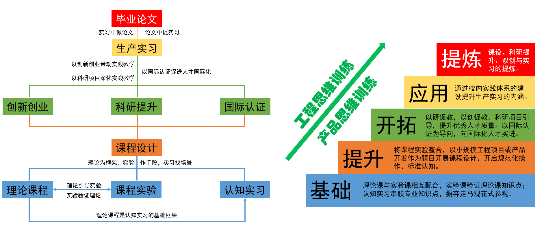 REPERS执行的新能源电力电子开发模式能够完美配合新工科教育中“树立创新性、综合化、全周期工程教育理念”,学生通过该平台可开展适应不同应用场景要求的新能源电源认知、设计、仿真、开发、测试和系统应用工作。以课程设计为核心,兼容课程实验,可扩展至双创教育、科研提升、生产实习及毕业论文阶段,全方位践行CDIO教育模式。