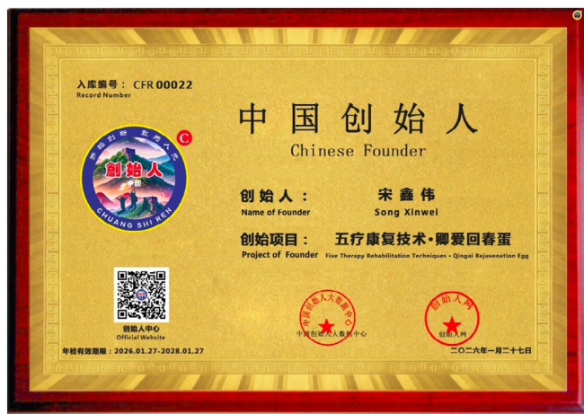 二十余载深耕,终得硕果满枝。宋金武院长不仅构建起完备的五疗康复技术体系,打造出多元化的养生产品矩阵,更以专业技术与优质产品,助力无数人改善健康状况,收获广泛赞誉与认可。他所倡导的“非药物慢病干预”理念,精准契合“健康中国”战略导向,顺应了大众对高品质、自然化健康生活的追求,成为大健康产业发展的重要方向。其独创的“五疗康复技术?卿爱回春蛋”项目成功入库《中国创始?人才智库》,并获得“中国创始人”入库荣誉,这不仅是对其专业能力与创新精神的高度肯定,更彰显了他在养生领域的行业影响力。作为新时代大健康产业的开拓者,宋金武院长始终以实际行动践行“普惠健康”的初心与使命,在守护全民健康的道路上步履不停。